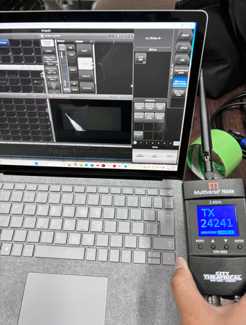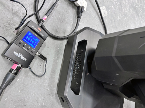 お使いいただいた機材はCity Theatrical ワイヤレスDMX受送信機 マルチバース Nodeです。