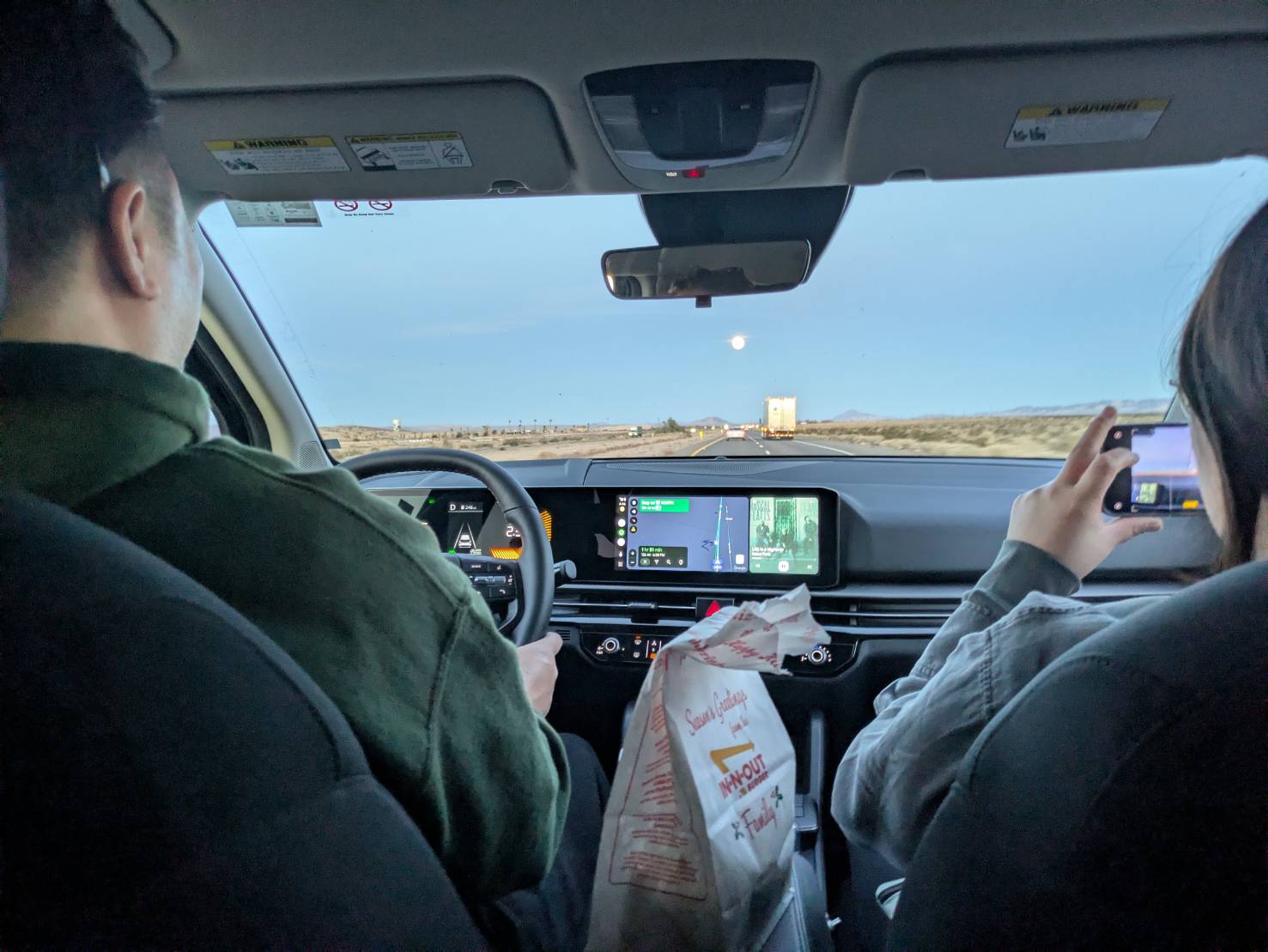 日が暮れて寝落ちボスと寝落ちしそうなお嬢を尻目に前方の月のありえないデカさに驚く。