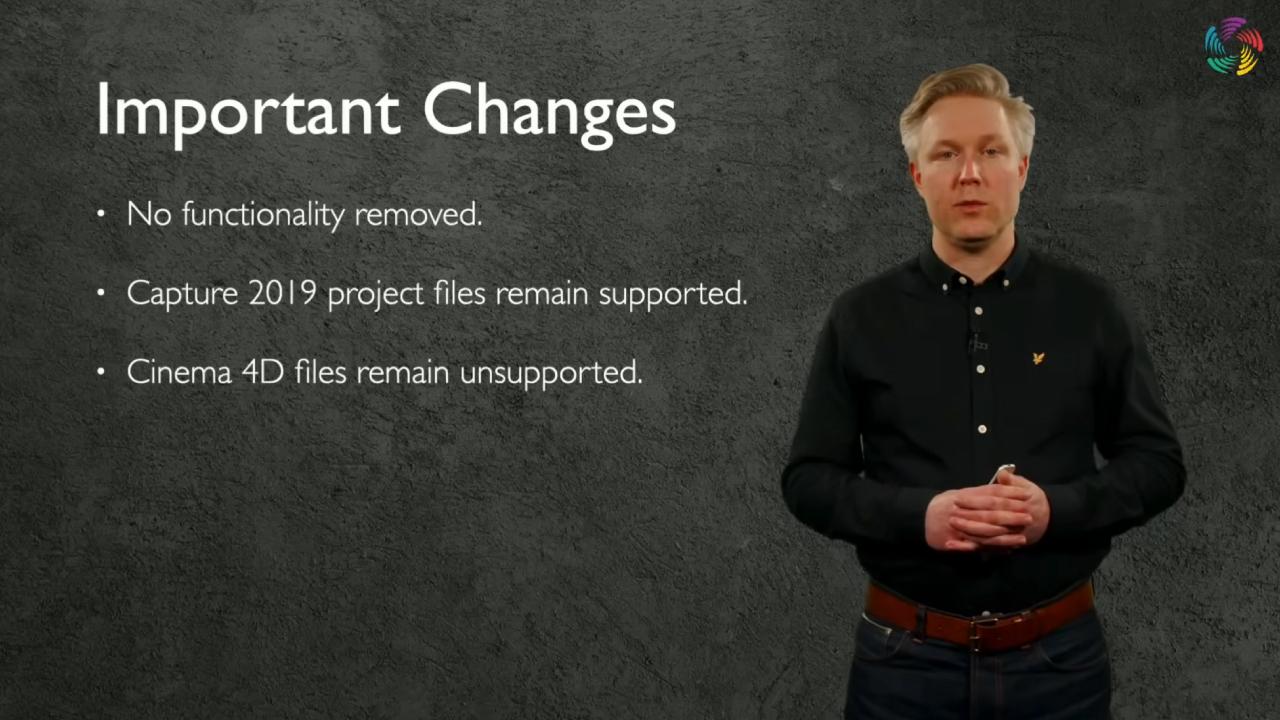 その一方で昨年と同様に、Capture 2019 のプロジェクトファイルは引き続きサポートされますが、Cinema 4D ファイルについては非対応のままとなっています。