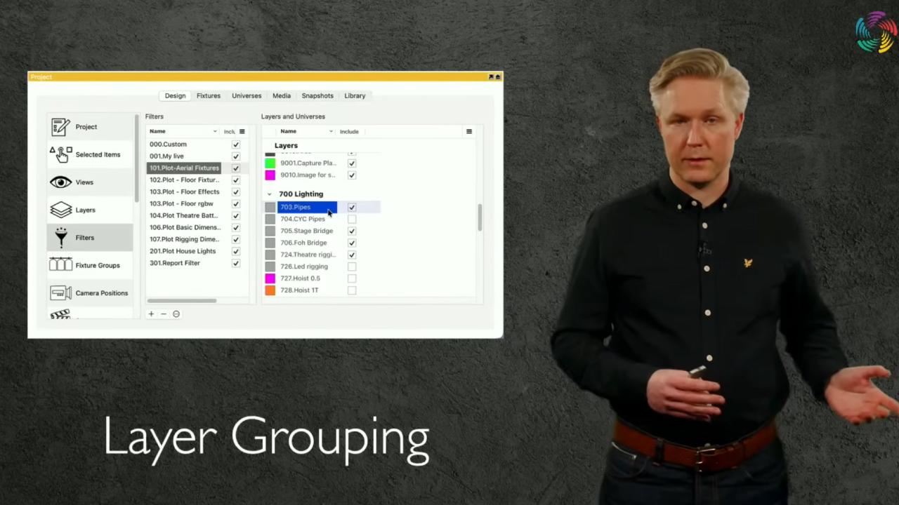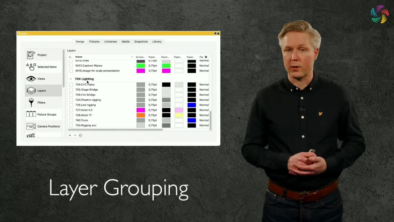 照明・音響・映像・リギングといった用途ごとに整理しやすくなり、レイヤー数の多いプロジェクトほど使い勝手が向上する機能になりそうです。