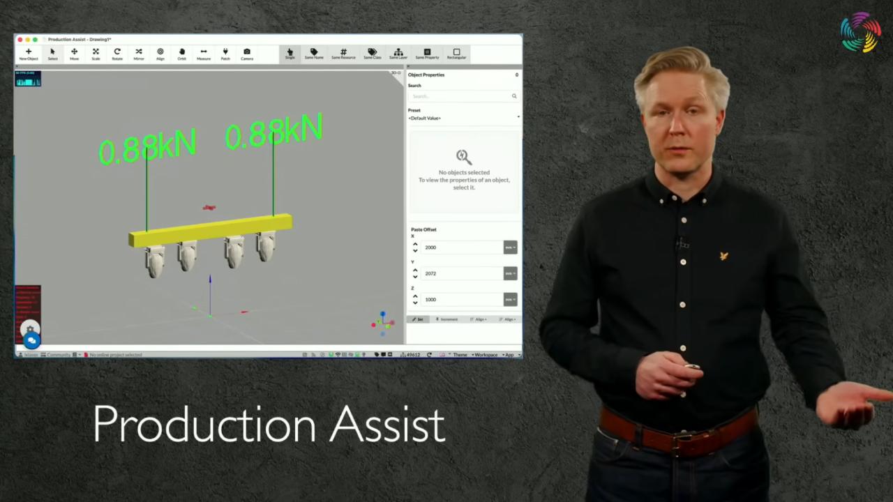 Production Assist は、トラスや吊り点にかかる荷重を確認するための構造計算ソフトで、海外では本格的なリギング/構造計算アプリとして展開されています。
