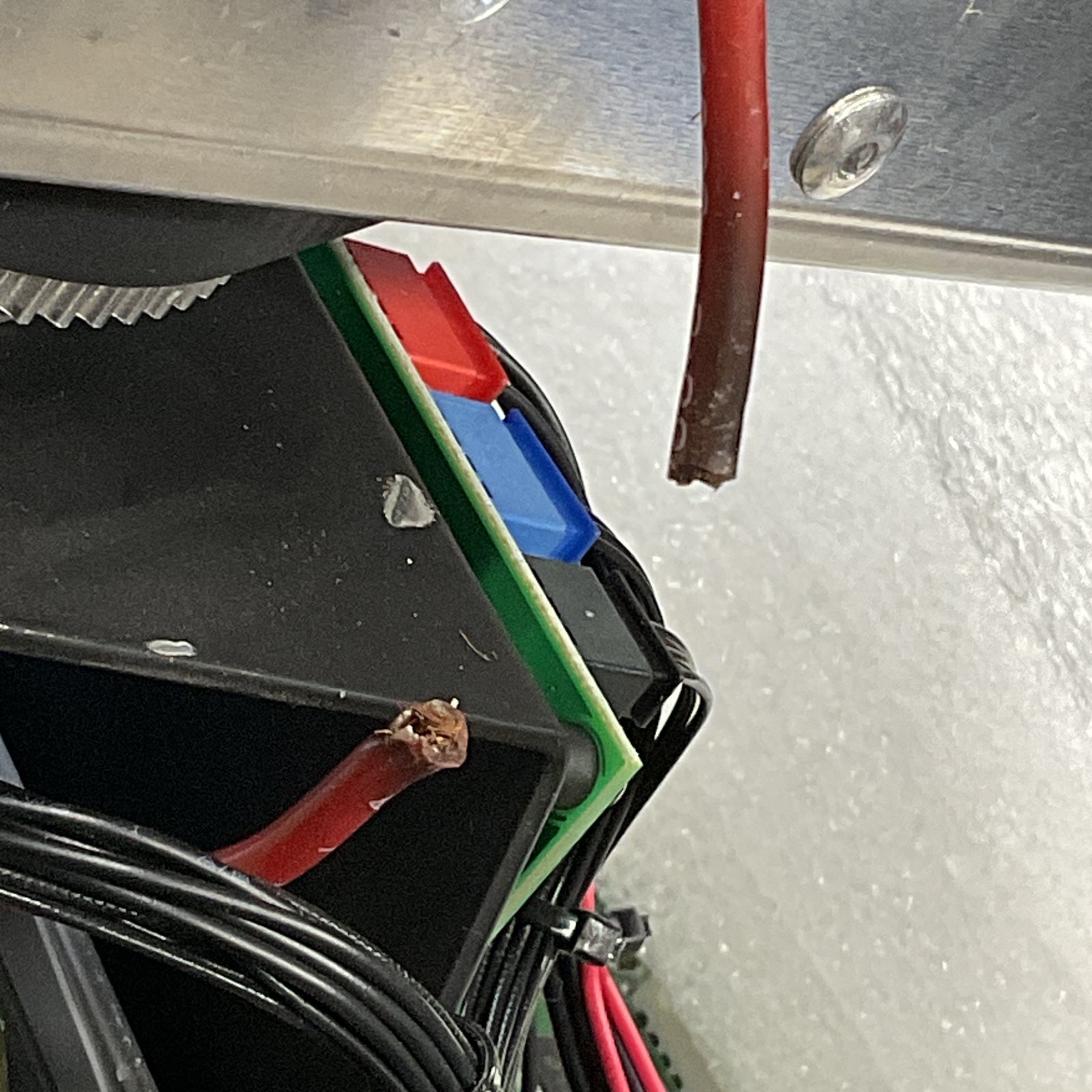 焦げているのが確認できるため、周囲のケーブルにも被害がないか念入りに確認しました。