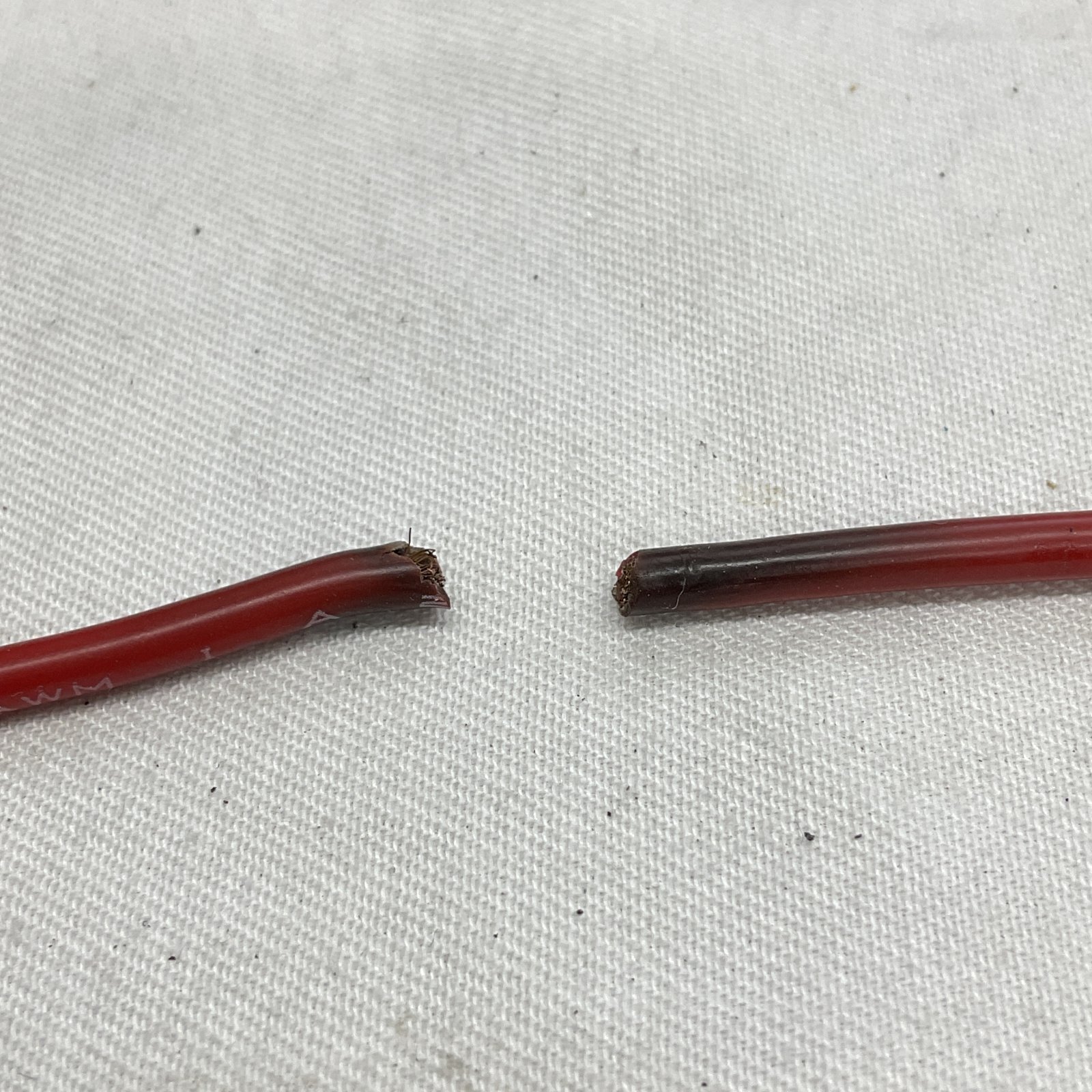 キズが入って芯線数が減ったところに負荷がかかったのでしょうか。
