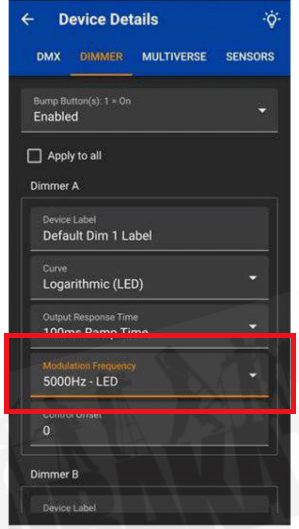 Curve:初期設定はLogarithmic(LED)その他、Square Law(Incan)(二乗法則カーブ);Linear(ライナー);Non-Dim(直送り)から選択していただけます。