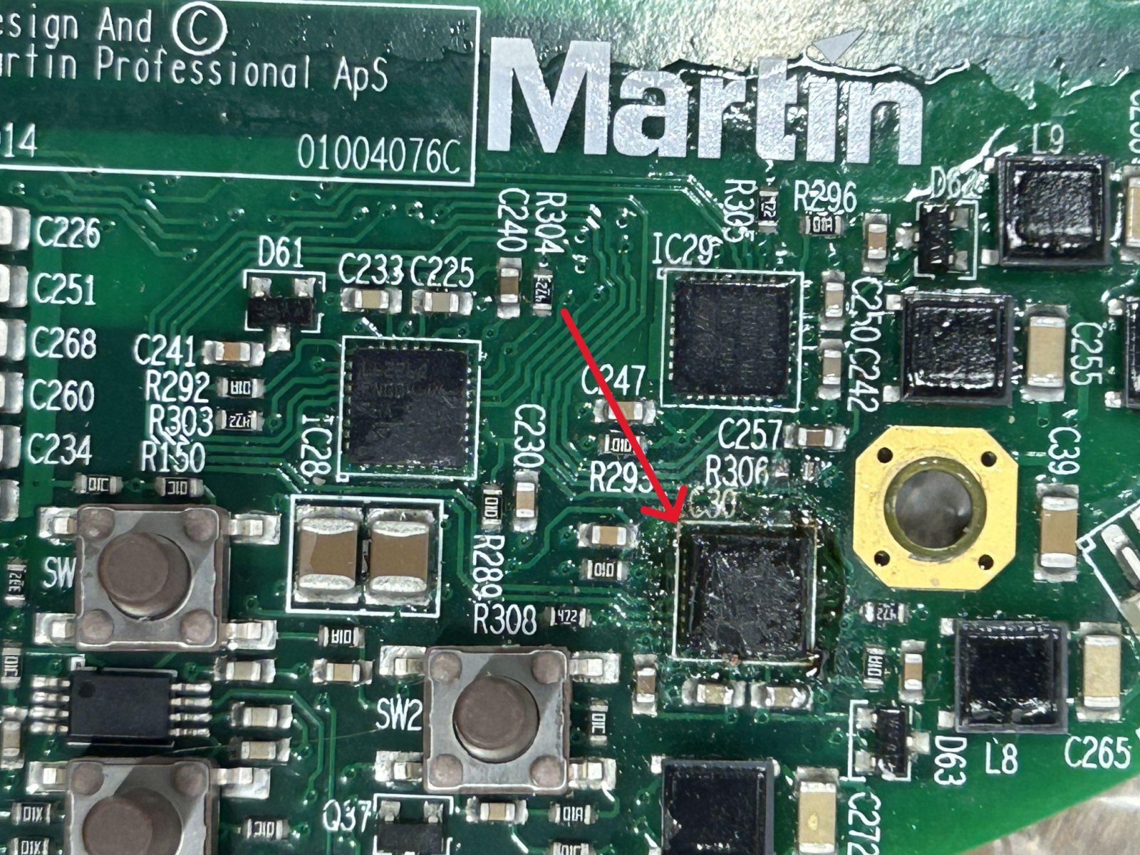 →1か所チップ交換しましたがかなり加熱しないと外れなかったため不良の素子すべてを交換できても基板を損傷する可能性があるため断念しました。