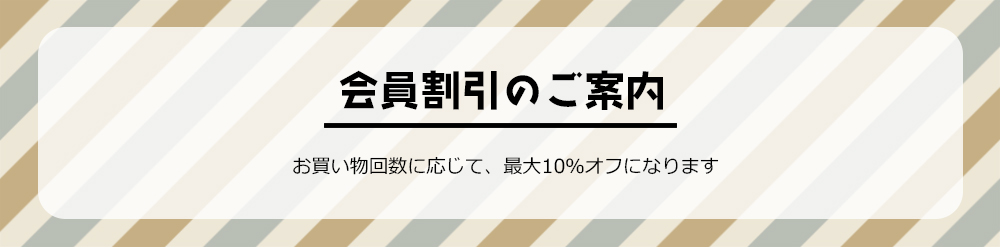 会員割引サービスは、会員登録後、ログインした状態でお買い物いただいた場合のお買い物回数が対象となります。
