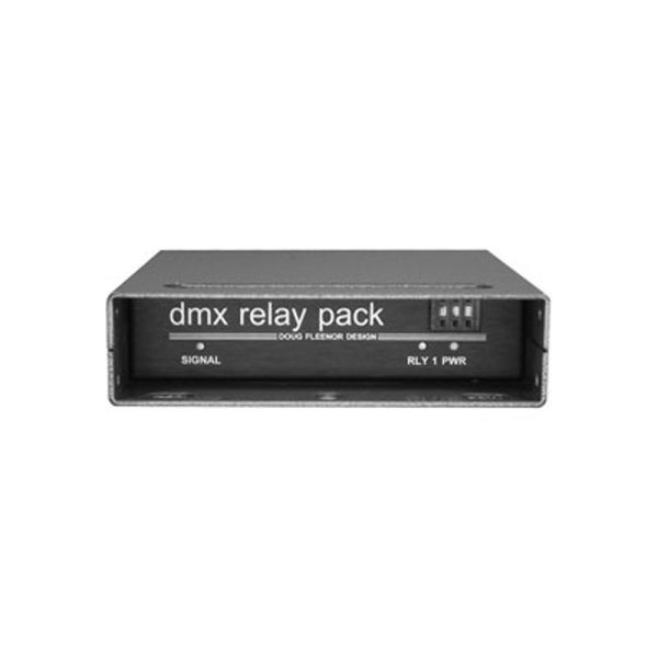 Doug Fleenor Design DMX Relay Packs use dry contact air-gap relays. These relays have advantages and disadvantages over the solid state relays found in dimmer packs. Solid state relays can be switched on and off rapidly with no wear, but tend to leak current even when in the off position. Air-gap relays do not leak current, but due to their mechanical design have a finite life span. Doug Fleenor Design relay packs should be used where a true-off condition is required (no voltage, no current). They should not be used in applications where they will be turned on and off rapidly (for example in chase lights).