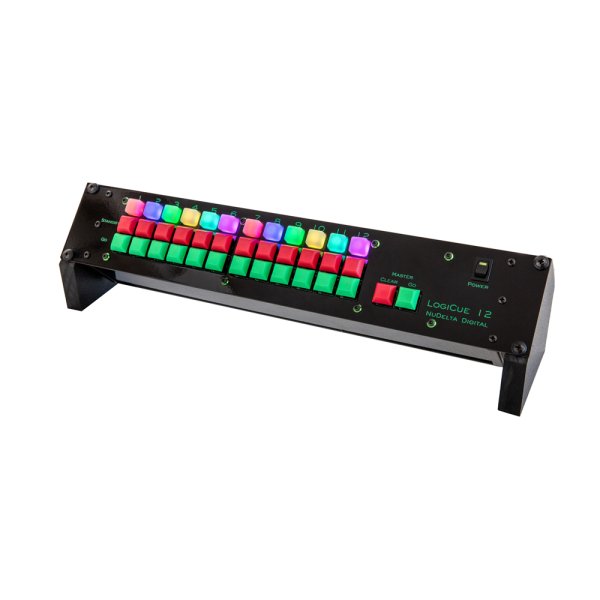 LogiCueは、演者と制作スタッフを簡単かつ正確にキューすることができるデジタルキューライトシステムです。コントローラーは、すべてのチャンネルの「スタンバイ」ボタンと「実行」ボタン、「マスター実行」ボタンと「マスタークリア」ボタン、および各チャンネルのキューライトの色に合わせたLEDインジケーターを備えています。