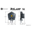 ・このReLampは、Arri ST1などの大型スタジオ向けの1K照明器具に設計されています。