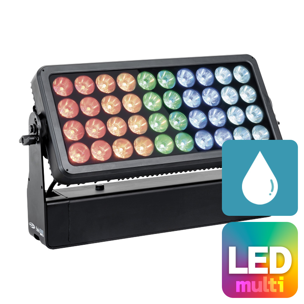 Showtec Helix S5000 Q4 は、IP65定格を備えた明るい40個の10W RGBW LED ウォッシャーで、屋外用途に適しています。
