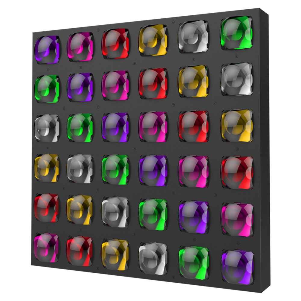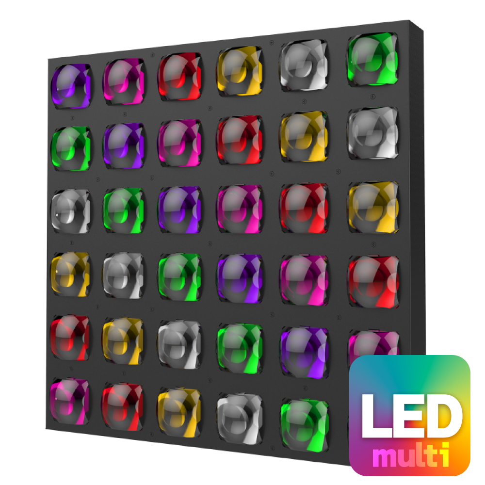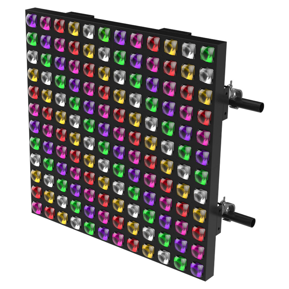 BRIGHTは、500 x 500 mmの標準サイズを採用したLEDフルカラーパネルで、強力なピクセル制御ビームを備えています。改良型LEDと独自の大型スクエアレンズにより出力を高め、2°のナロービームで高輝度ビームを放射します。36個の12W RGBW LEDを搭載し、力強いカラーエフェクトと個別LED制御に対応しています。多彩なストロボスピードにより印象的な背景演出を実現し、簡単に連結できるため、創造性の高いエフェクトウォールを構築できます。密閉型ハウジング設計により内部への粉塵や液体の侵入を抑え、製品寿命の延長とメンテナンスコストの低減に寄与します。