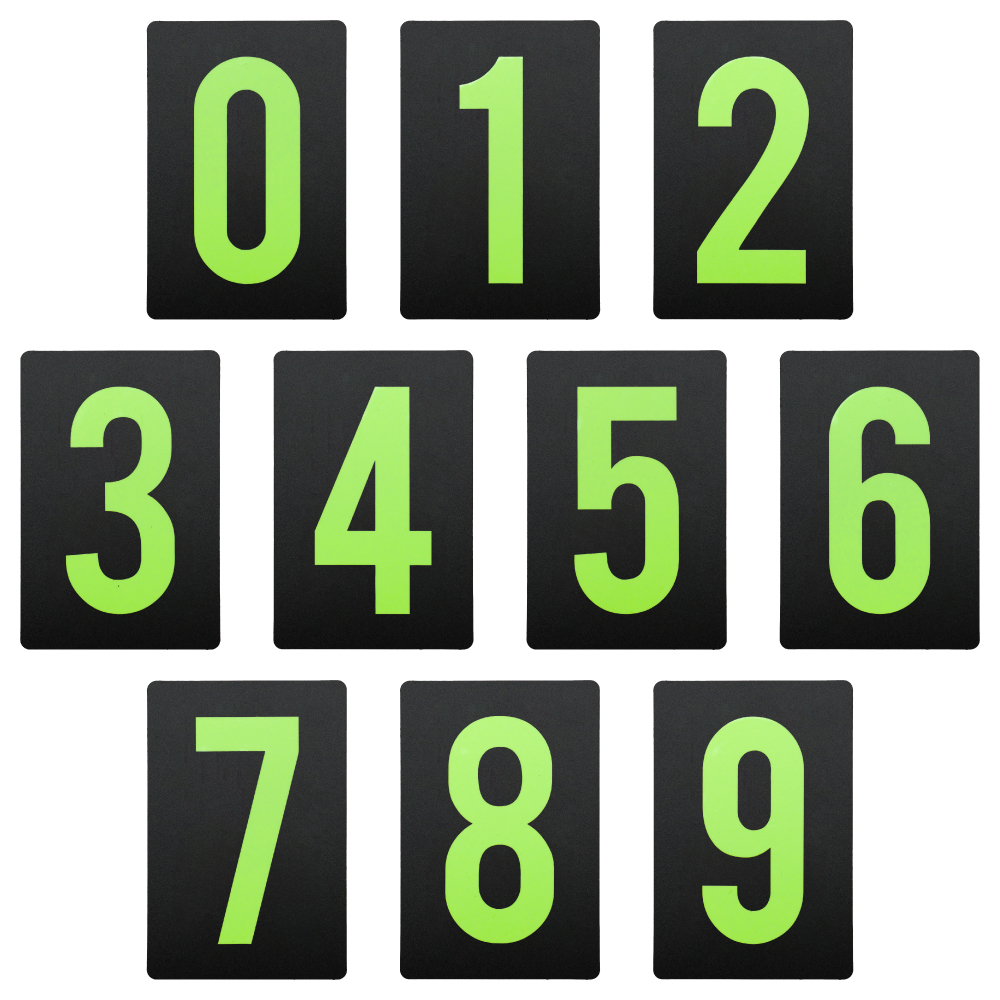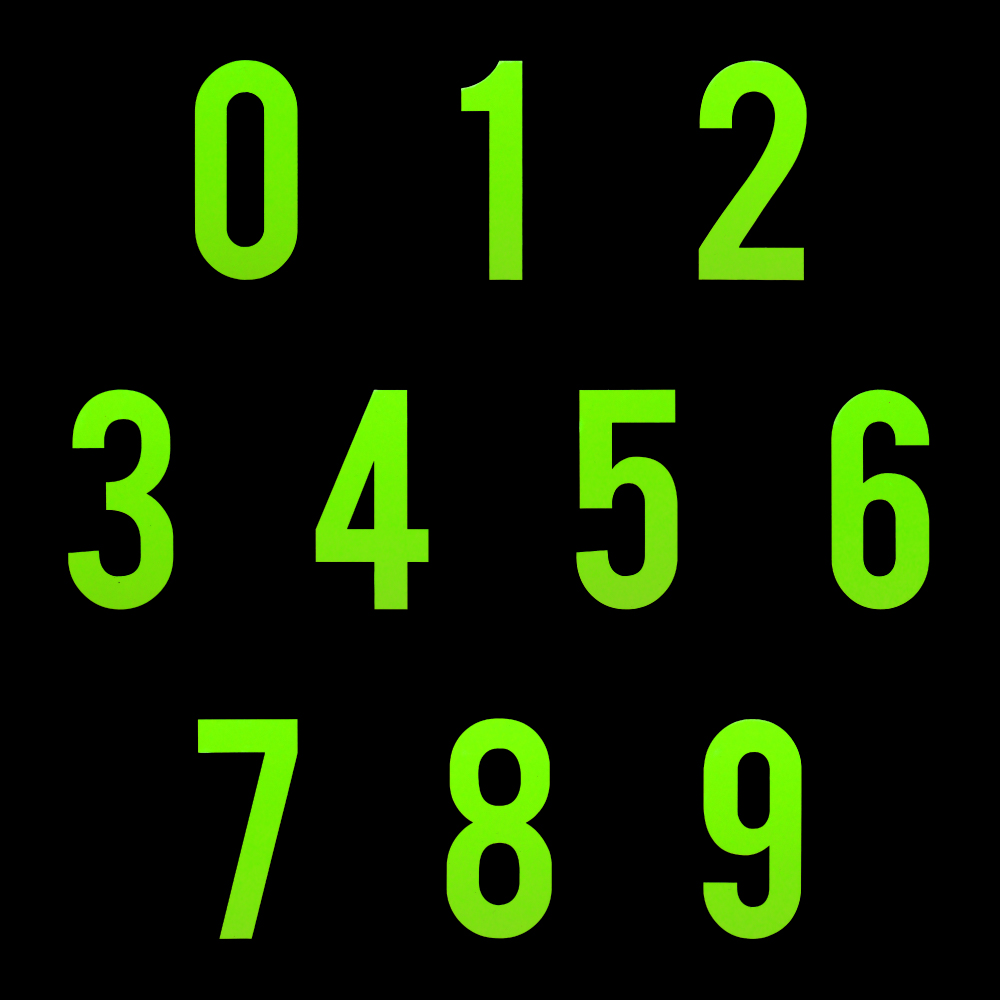 黒マットの薄いプラスチックのプレートに、数字の形に切り抜いた蓄光テープを貼り付けてあるため、何度でも再利用可能な超アイデア商品です!