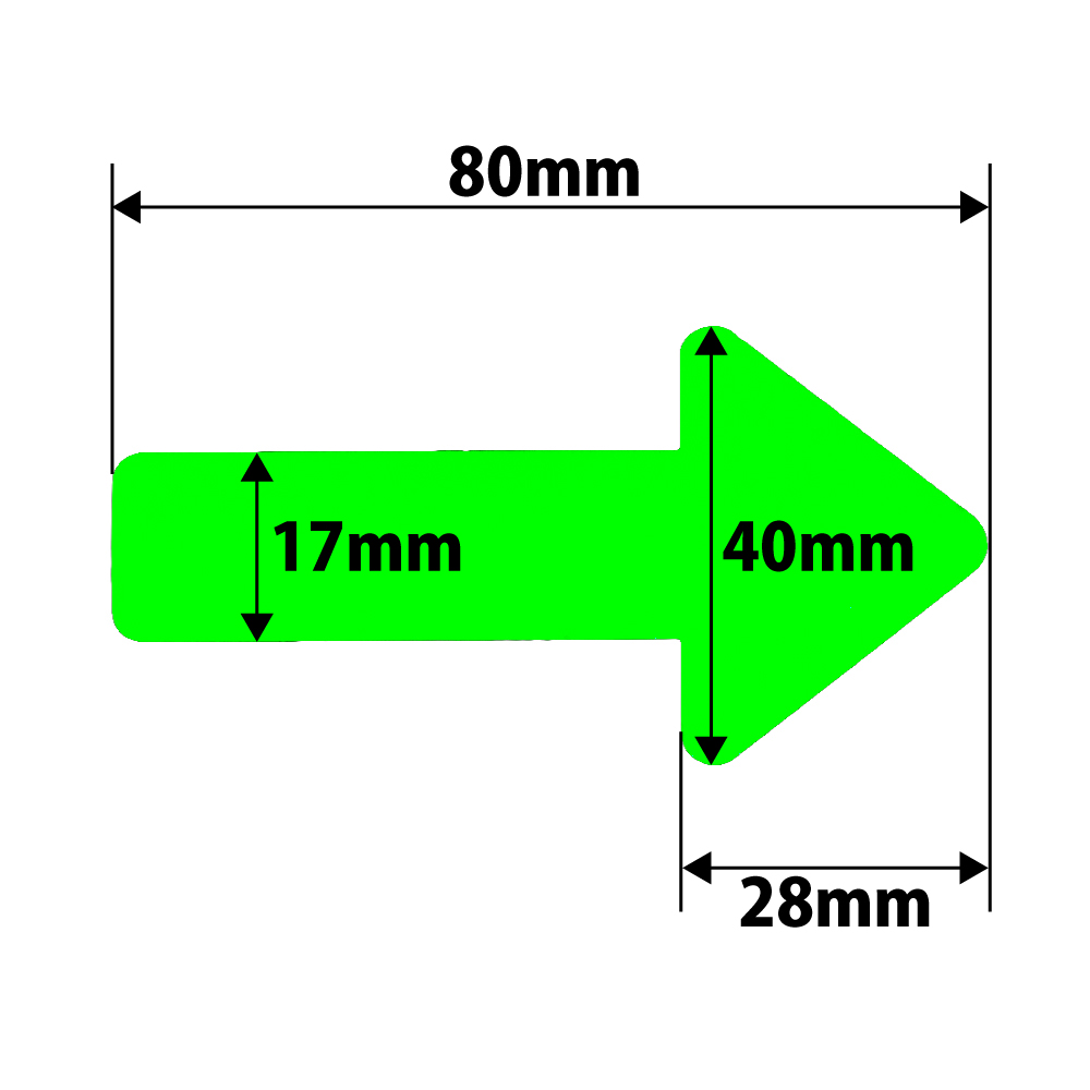 カット蓄光テープ 矢印「→」 [8枚入り・サイズS]
