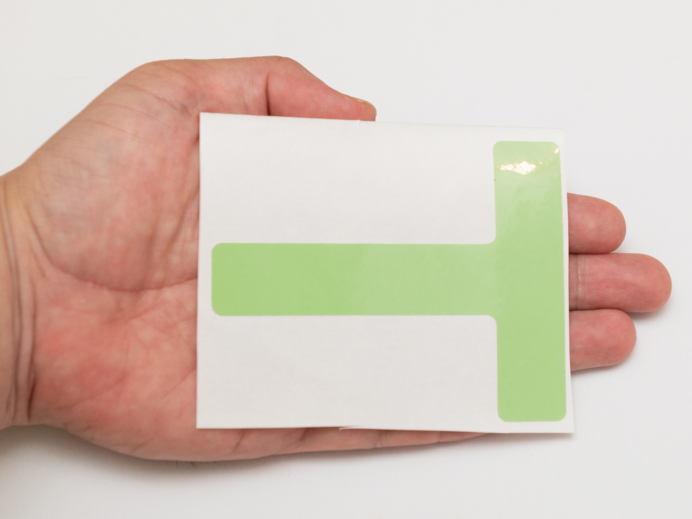 T型にカットしてありますので、センターマークや立ち位置マーキングに最適です。