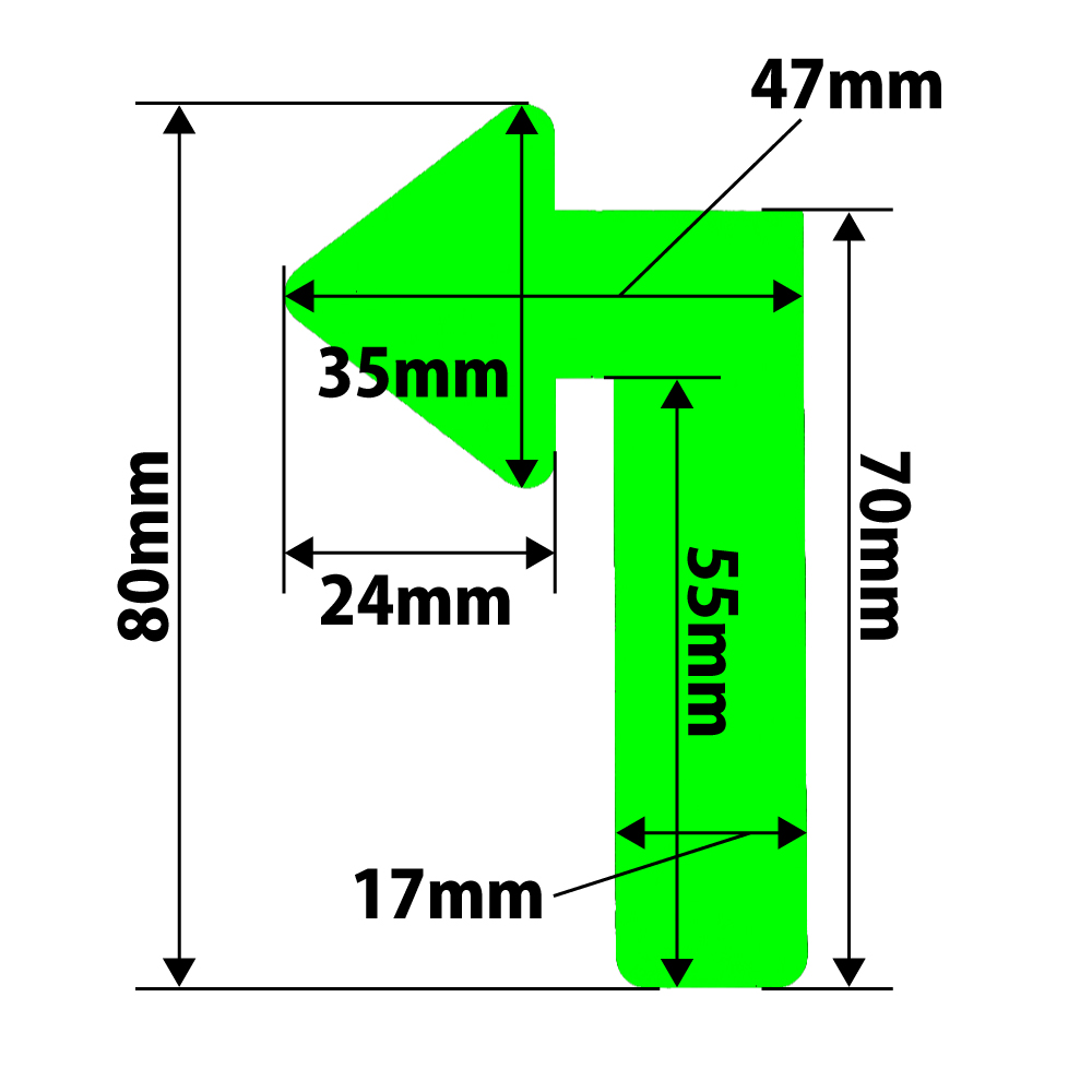 カット蓄光テープ 左矢印「↑」,テープ,型抜き蓄光(矢印・X・丸・数字・等),