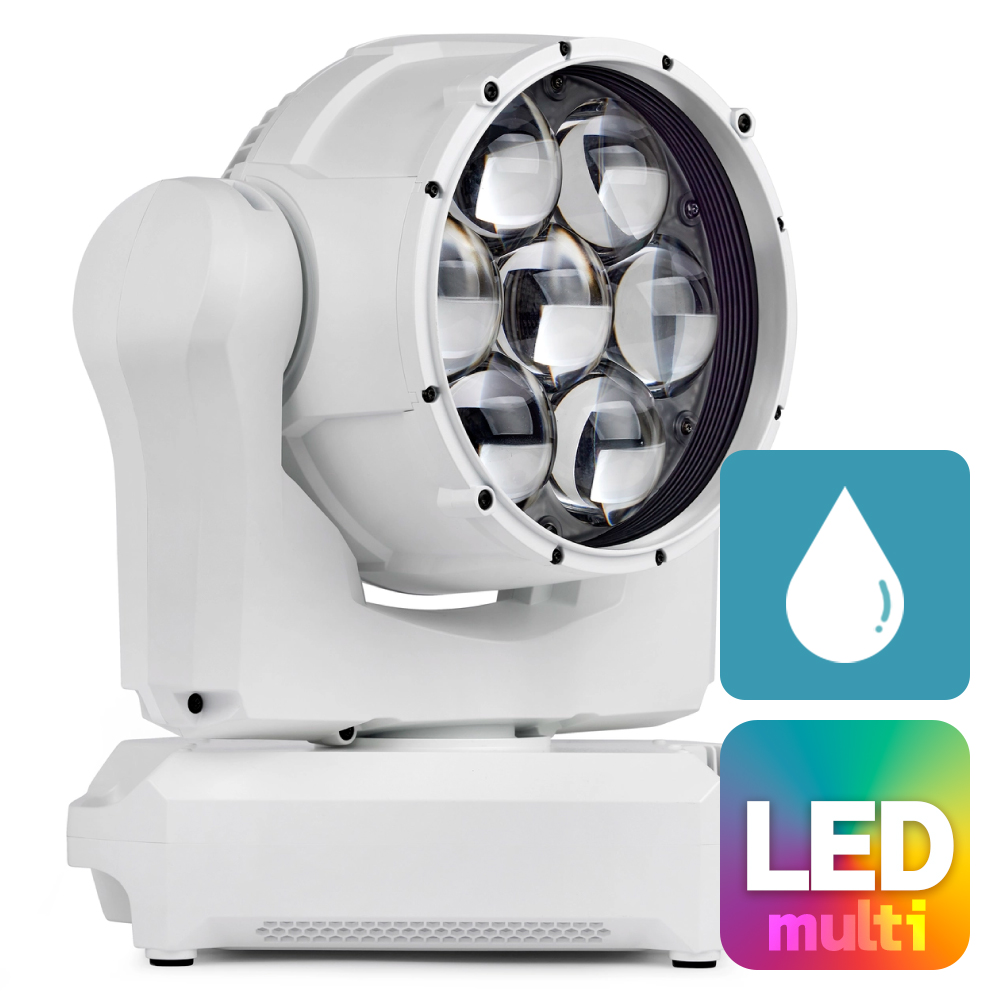 MAC Aura XIPは、屋外使用に対応するIP65等級のムービングウォッシュライトです。RGBWビームLEDとAuraフィラメントLEDを組み合わせた独自の光源構成により、均一で柔らかなウォッシュ光と、存在感のあるビームエフェクトを同時に表現できます。ピクセル制御と多彩な内蔵エフェクトに対応し、ツアー、フェスティバル、屋外イベント、放送用途など幅広い現場で高い演出力を発揮します。