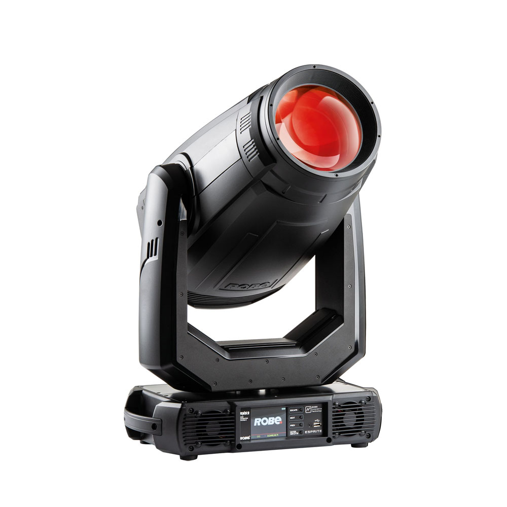 ESPRITEは、Robeが開発したWhite LED光源のムービングプロファイルライトです。TE™ 650W White LED TRANSFERABLE ENGINEを採用し、最大34,000ルーメン、85,000ルクス(5 m)の高出力を実現します。TRANSFERABLE ENGINE技術によりHP(High Performance)およびHCF(High Colour Fidelity)など異なるLEDエンジンを同一機材で交換でき、用途に応じて光量または色再現性を選択可能です。CMYカラーミキシング、可変CTO、回転・固定ゴボ、アニメーションホイール、フレーミングシャッター、プリズムなど多彩なエフェクトを搭載。Cpulse™フリッカーフリー制御やChromaTint™グリーン補正、L3™ディミングなどの技術により、テレビ、舞台、イベント用途で安定した高品質照明を提供します。