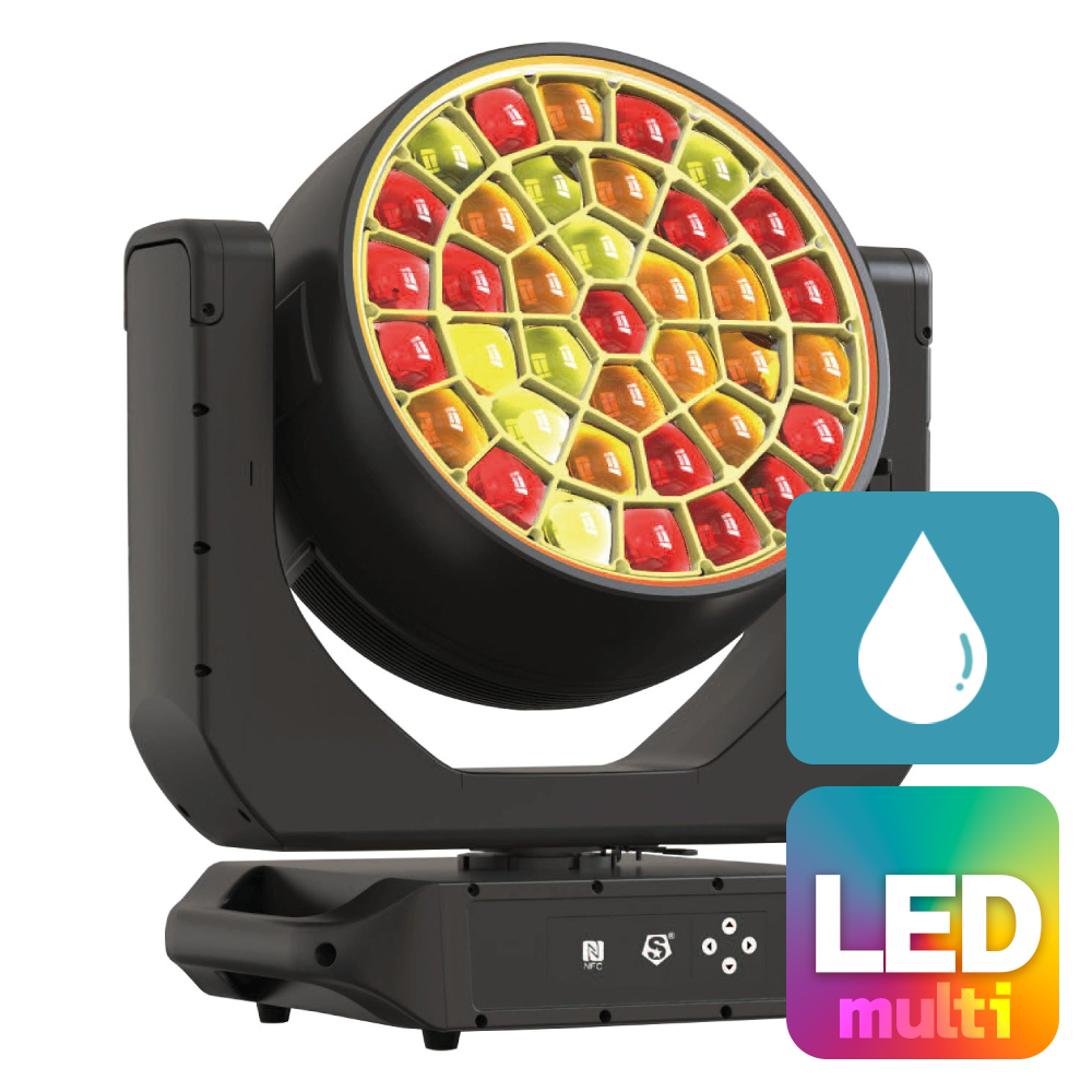 NW10は、イースペックが取り扱う新世代のムービングウォッシュライトです。カスタムRGBL LED光源を多数搭載し、高い光量と広いビーム可変範囲を提供します。劇場やライブ、テーマパーク、屋外イベントなど幅広い演出シーンに対応するIP66対応のモデルです。