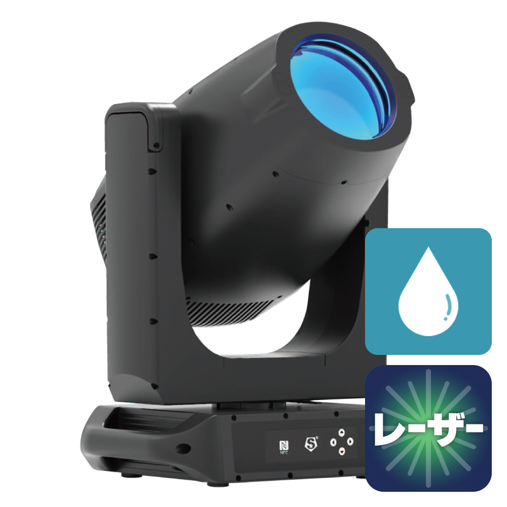 BX-3 PLUSは、500Wレーザー光源を搭載した防滴仕様のハイブリッドムービングライトです。大口径180mmレンズと高出力レーザー光源の組み合わせにより、0.6°〜30°の広いズームレンジを実現し、20mで410,000ルクスの高照度を発生します。極めてシャープでパワフルなビームを形成し、アリーナや大型イベントなどの大規模演出に対応します。CMYカラーミキシング、豊富なゴボ、プリズム、アニメーションホイールなど多彩なエフェクト機能を搭載し、防塵・防水IP66構造により屋外環境でも安定したパフォーマンスを発揮します。