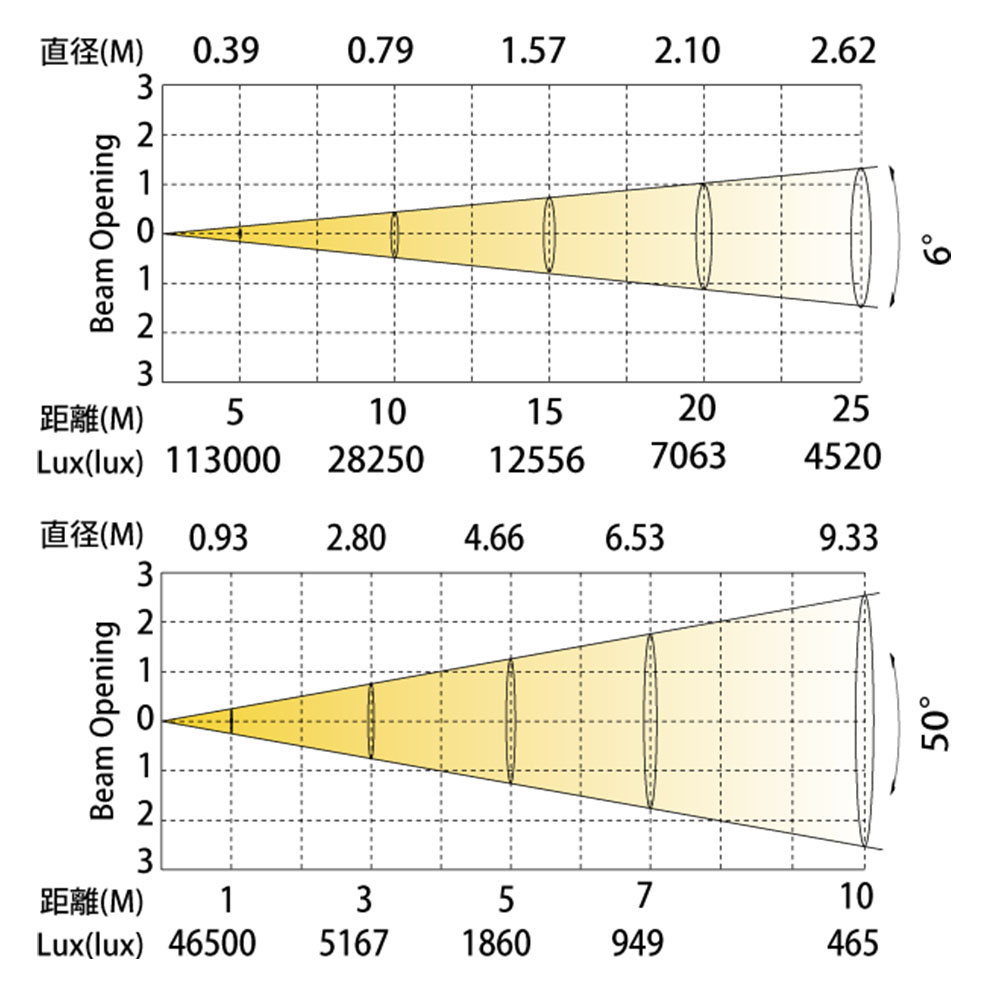 ・照度:113,000ルクス(5m / 6°)