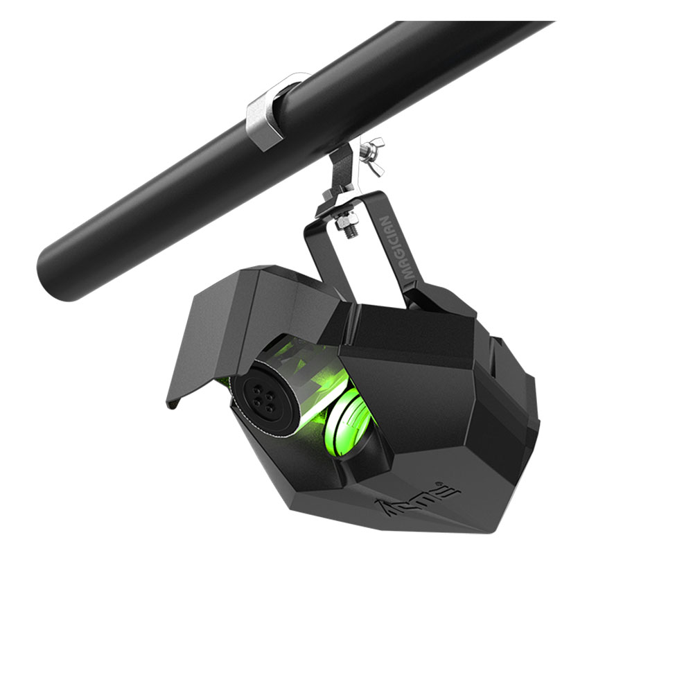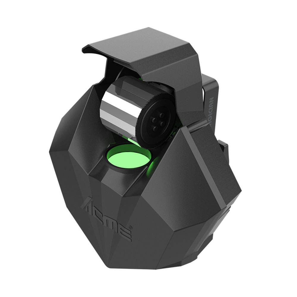 MAGICIAN は ACME LIGHTING が設計したコンパクトなエフェクトライトで、80W LED×1 を搭載し、3° の狭角ビームによる鮮明な光線効果を提供します。独自の回転ドラム機構により水平方向 110°、垂直方向 90° のスキャン動作が可能で、静止ゴボホイールによる多彩なパターン演出を実現します。複数のショーモードとインテリジェントなサウンド制御に対応し、バーやパーティスペースなどの演出に最適な軽量モデルです。