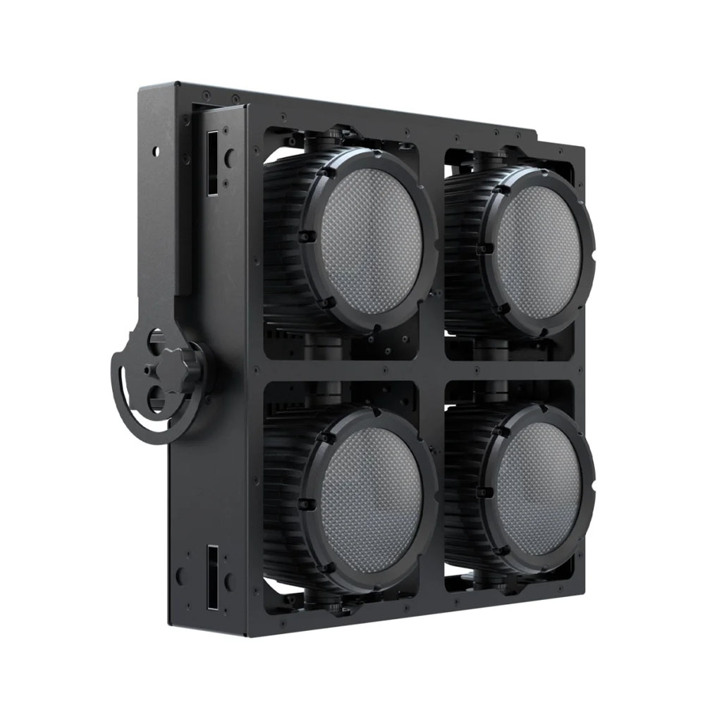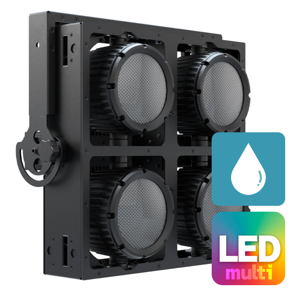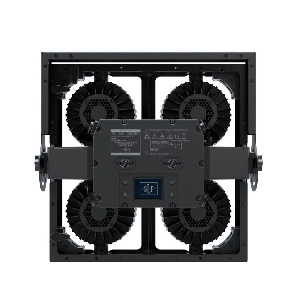 MATRIX Eye 4は、GLPのMATRIXシリーズに属するLEDブラインダーライトです。複数のフレームユニットを機械的に連結して1つの照明ユニットとして構成できるクラスタシステムを採用しています。RGBAL LEDを光源とし、GLP iQ.Gamutカラーアルゴリズムにより高彩度カラー出力と高品質なホワイト光を生成します。伝統的なDWEブラインダーのタングステン挙動を再現するタングステンシミュレーション機能を備え、LEDの効率と従来ブラインダーの温かい調光特性を両立しています。IP65保護構造により屋内外の環境で使用でき、複数機材を連結した柔軟なライティングシステムを構築できます。