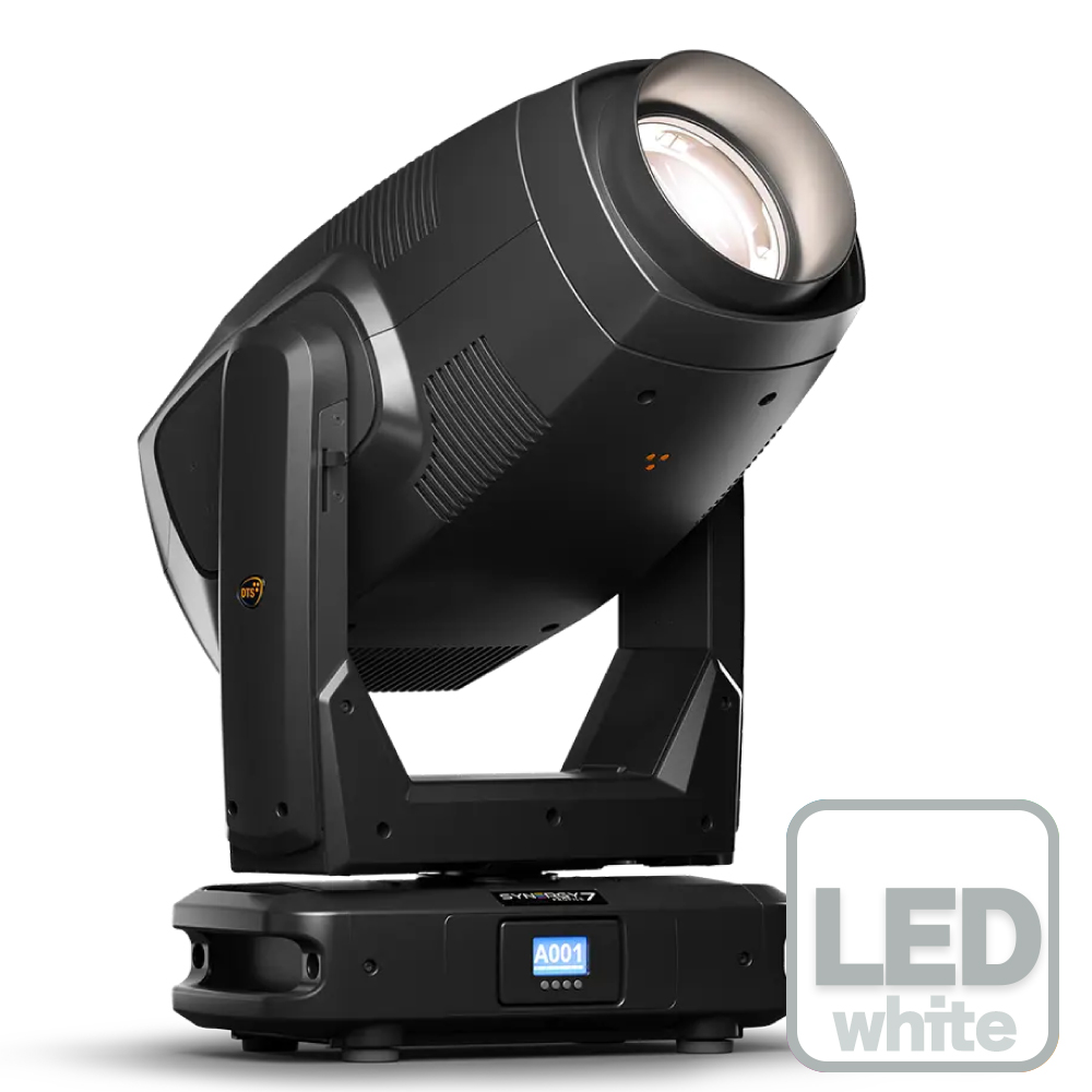 SYNERGY 7 PROFILE HI-CRIは、1050 W LEDを搭載した高性能プロファイルムービングヘッドです。31,500 ルーメンの光出力、7°–52°の電動リニアズーム(オートフォーカス付)、デュアルプリズム、カスタマイズ可能な回転ゴボホイール、4枚ブレード回転フレーミングシステムを備えています。高演色性能(CRI >95、TLCI >95)とUltra-silentモード(36 dBA @ 1 m)を搭載し、DMX、RDM、Art-Net、sACNに対応します。