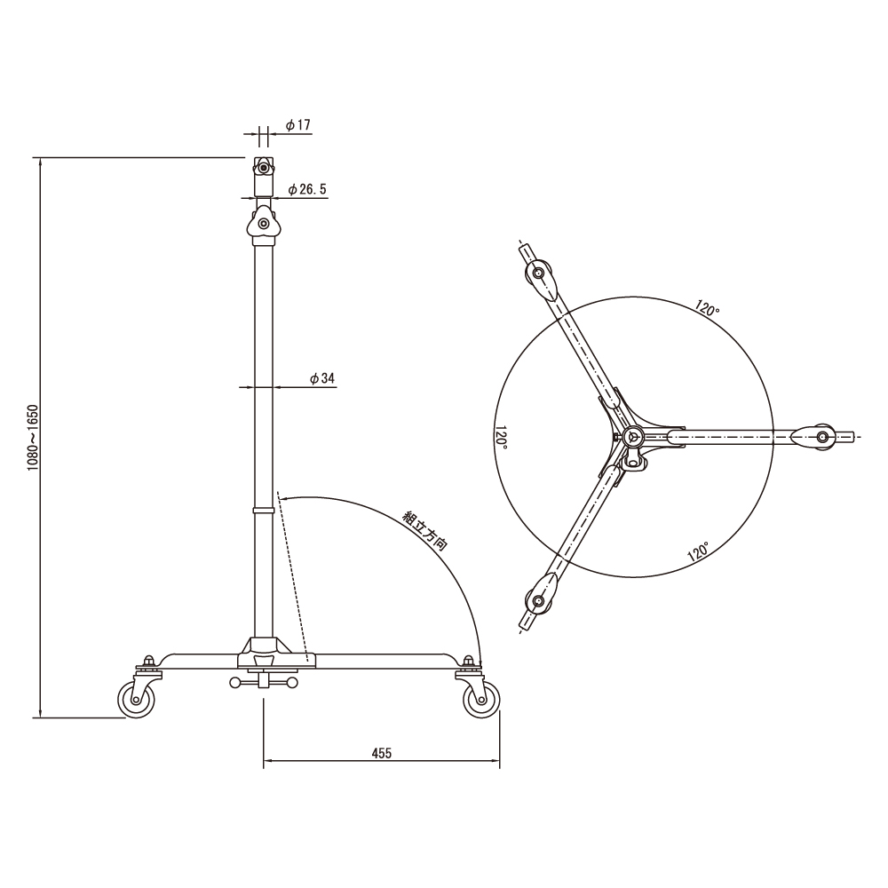 松村 キャスター付きスタンド SB-3N,照明アクセサリ,スタンド・ベース・スタンドアクセサリ,