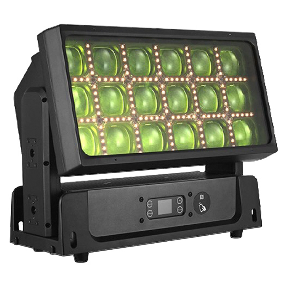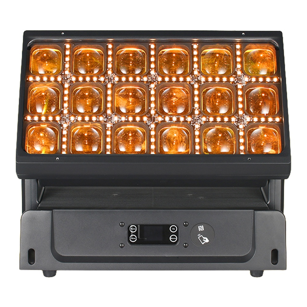 メイン光源に50W RGBL LED×18を採用し、豊かで純度の高い力強いカラー出力を実現。同時に、精密レンズ背面にCW+WW Aura背景照明(1W LED×135)を内蔵し、映画のような幻想的な背景演出と奥行きのあるステージ表現を生み出します。