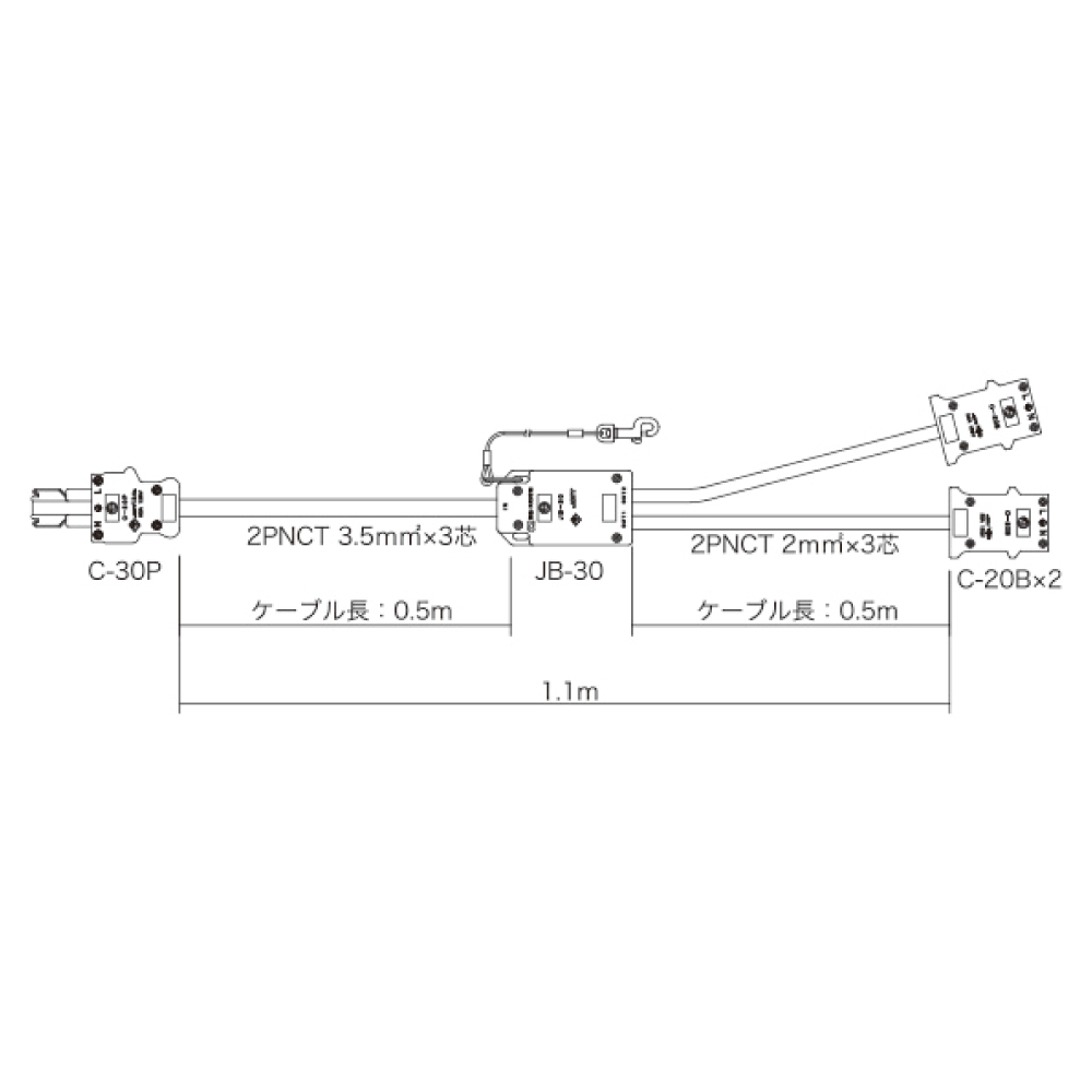 C型30Aプラグ - C型20Aコネクタ x 2分岐