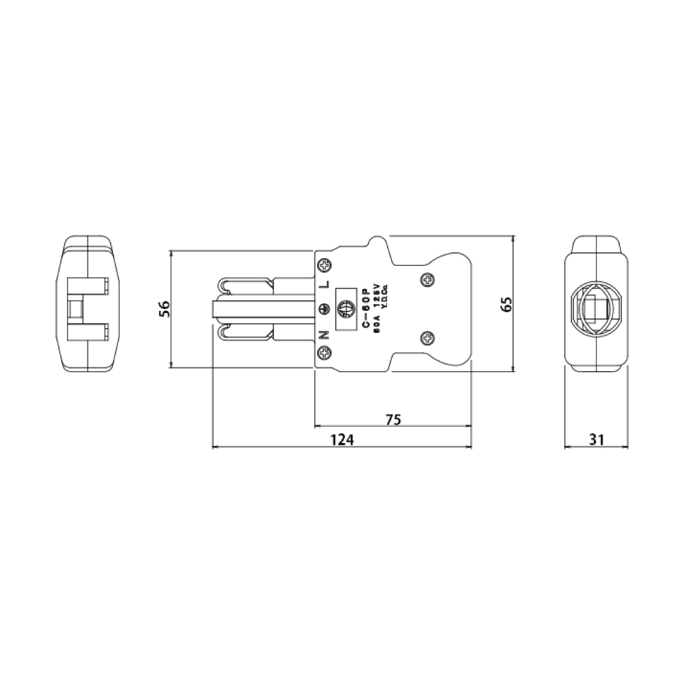・外形寸法/W65×H31×D124mm