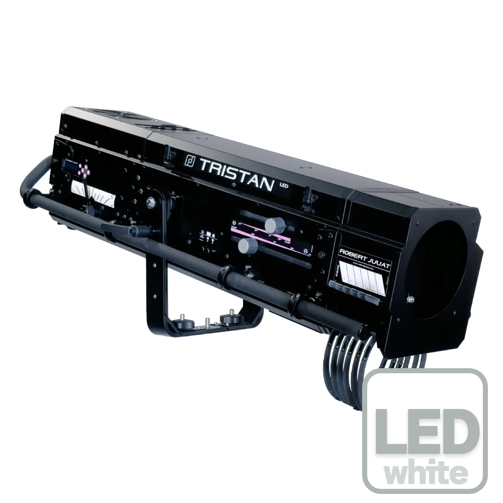 Tristan(トリスタン)は、コンパクトなボディに825 WクールホワイトLED光源を搭載したフォロースポットです。従来の1800W MSRフォロースポットに匹敵する高出力と、7° - 14.5°のズーム範囲を備えています。電動アイリスにより細かなビーム制御が可能で、FOHやトラス、バックライトなど幅広い用途に対応します。