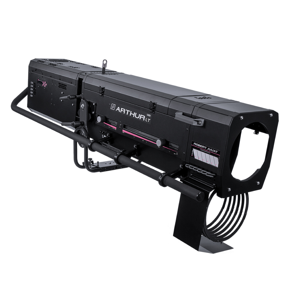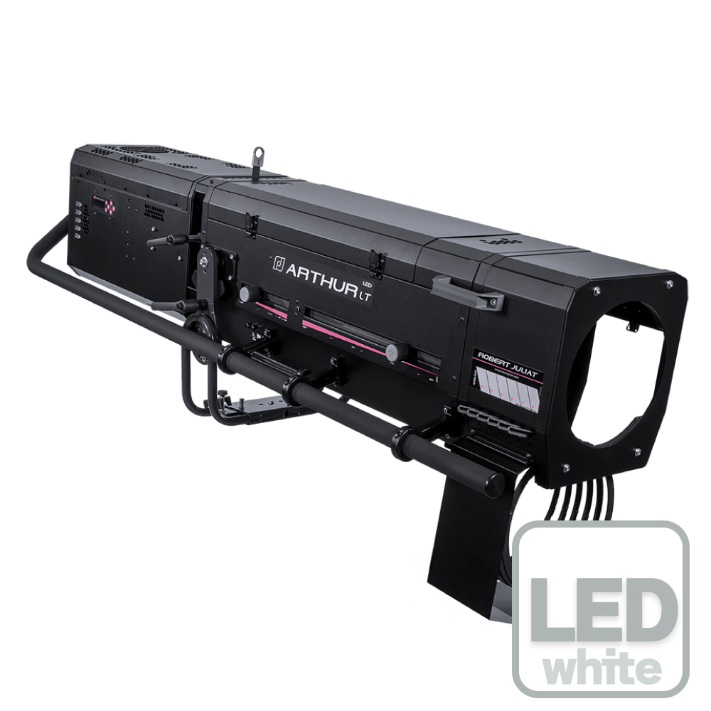Arthur LTは、狭角ビームを備えた840 W LEDロングスローフォロースポットです。4° - 10°のズーム範囲を持ち、HMI 2500W Aramisを上回る出力性能を実現します。50 m距離で2000ルクスの照度と高CRI(>94)により、演者の表現を正確に再現します。静音ファンにより静かな環境でも使用可能で、オペラハウスやコンサート会場、大規模アリーナなど幅広い現場に対応します。