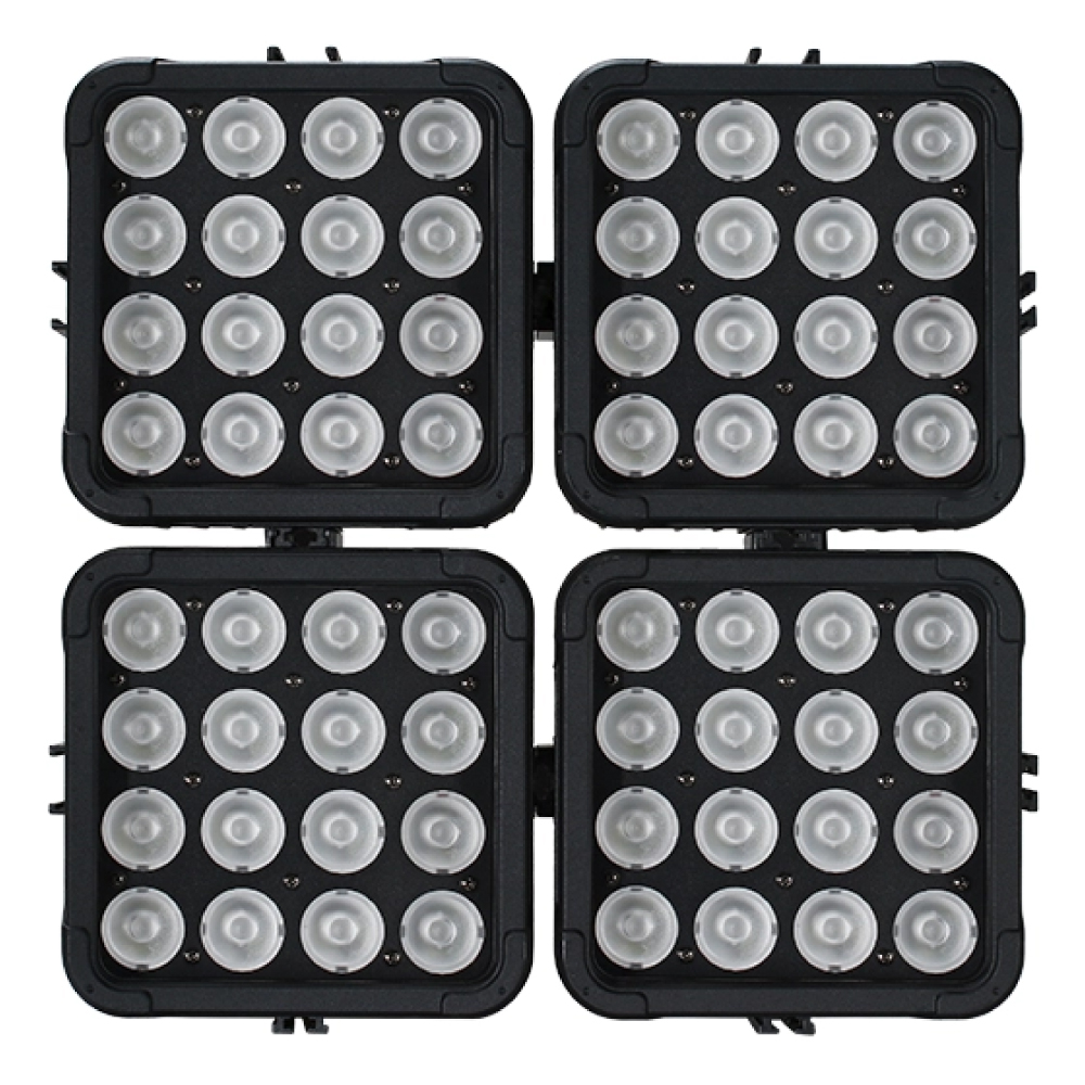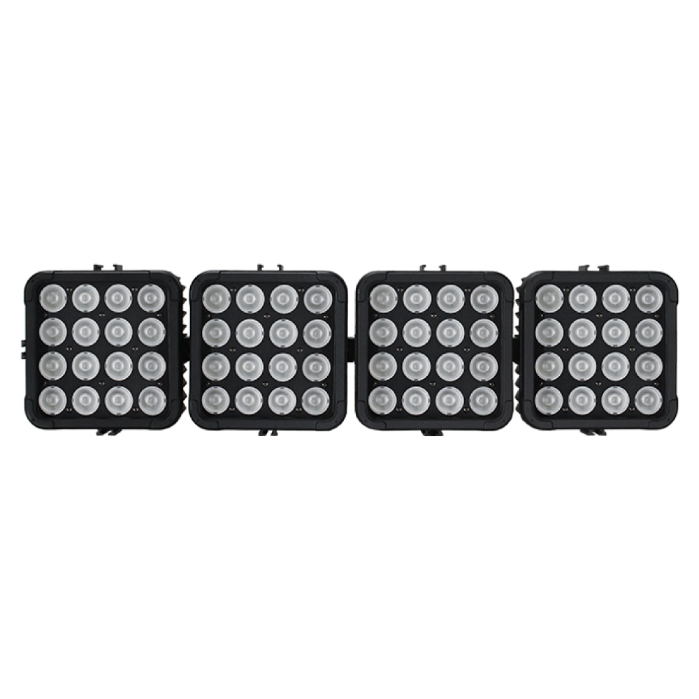 16基の15W高輝度RGBW 4-in-1 LEDと高性能光学レンズを組み合わせることで、強力な光出力、優れた混色性能、なめらかで均一なウォッシュ照射を実現しています。同クラスの器具の中でも際立った明るさを誇り、市場における同レベルの製品と比較しても同等以上の性能を持っています。