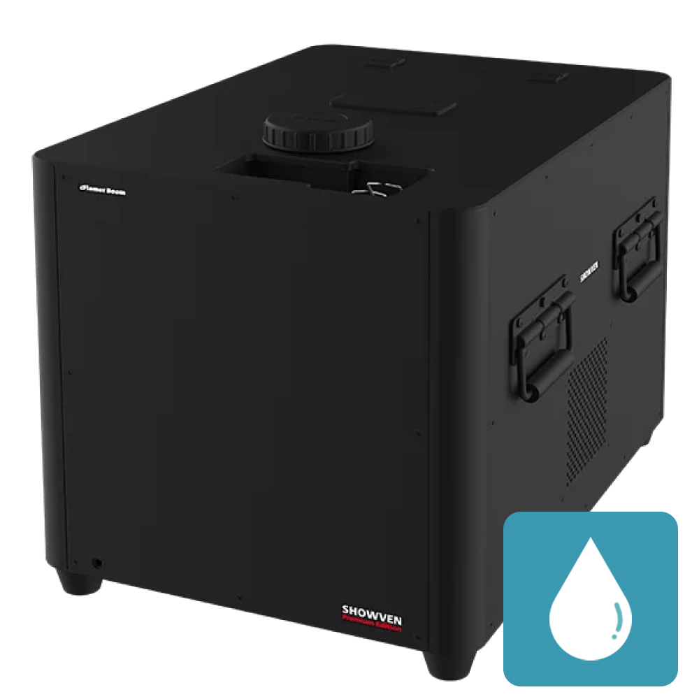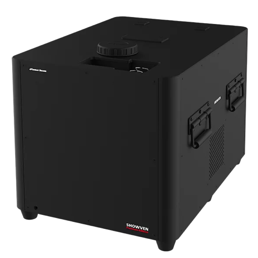 SHOWVENのcFlamer Boomは、フレームボール、スパーク、爆発音の3つの演出効果を1台で実現する特殊効果マシンです。カラー炎を生成できるフレームシステムに加え、視覚と聴覚の両方に訴える演出を可能にし、大規模なライブイベントやステージ演出に適したモデルです。
